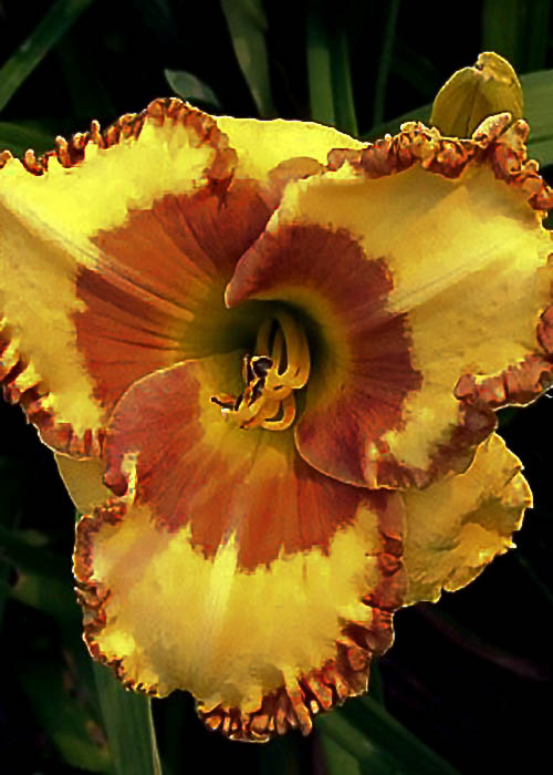 Колір квітки – Яскравий жовтий з оранжевим оком