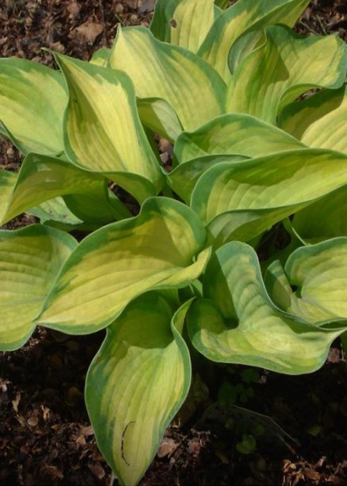 Хоста Bright Lights квіткова багаторічна рослина середнього терміну цвітіння. Висота куща 48 см і діаметром 80 см. Листя міцне з світло-жовтою серединою і зелено-блакитною нерівномірною облямівкою. Повний опис хости Тут