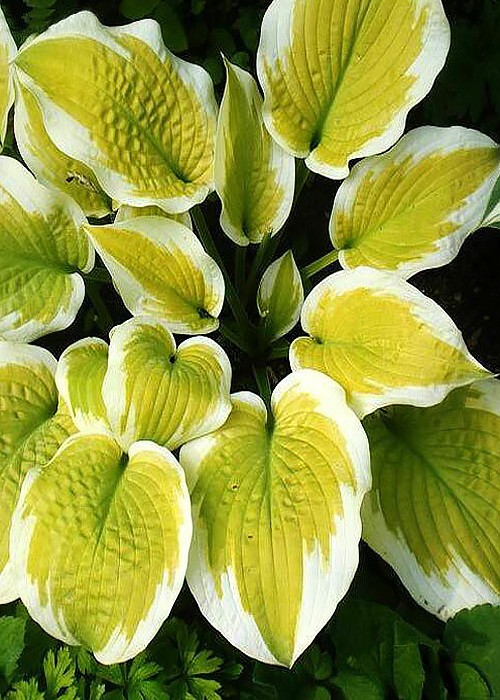 Колір листка – світло зелений з нерівномірною білою облямівкою Колір квітки – світло лавандовий
